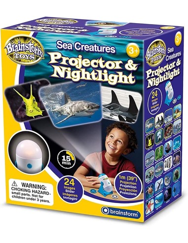 Projecteert in een donkere kamer 24 fantastische afbeeldingen van zeedieren in kleur op muren en plafonds.