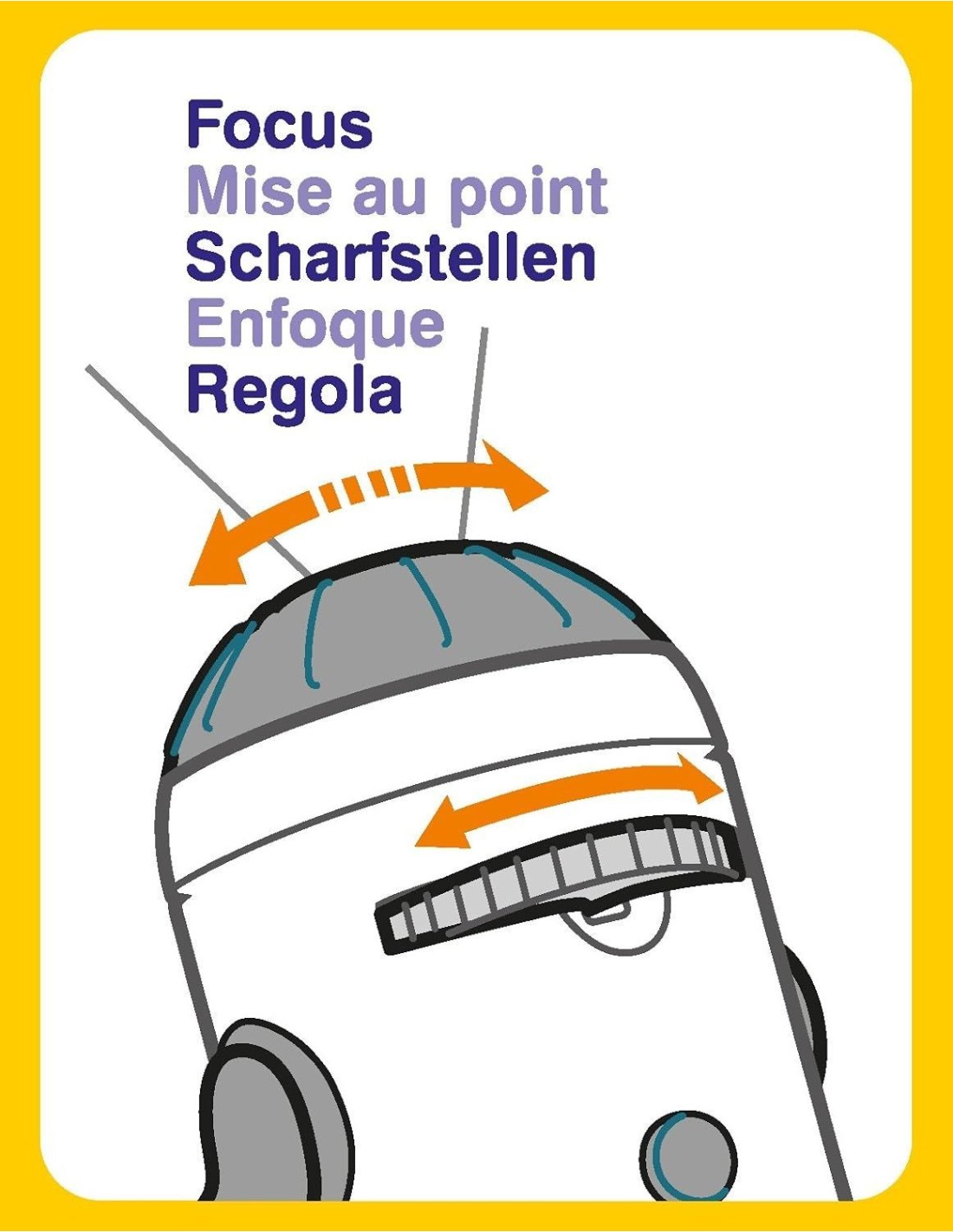Creëert heldere, scherpe beelden tot een meter breed - draai simpelweg aan de lenskop om scherp te stellen.