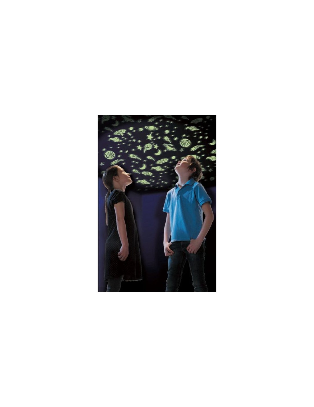 Creëer het universum in je eigen kamer met de meegeleverde zelfklevende stickers. Bevat 150 plastic glow-in-the-dark planeten, sterren, meteorieten en meer. Plus meer dan 350 papieren glowstars van The Original Glowstars Company – in totaal meer dan 500 glow-vormen. Inclusief een leuk informatieblad met ruimteweetjes.