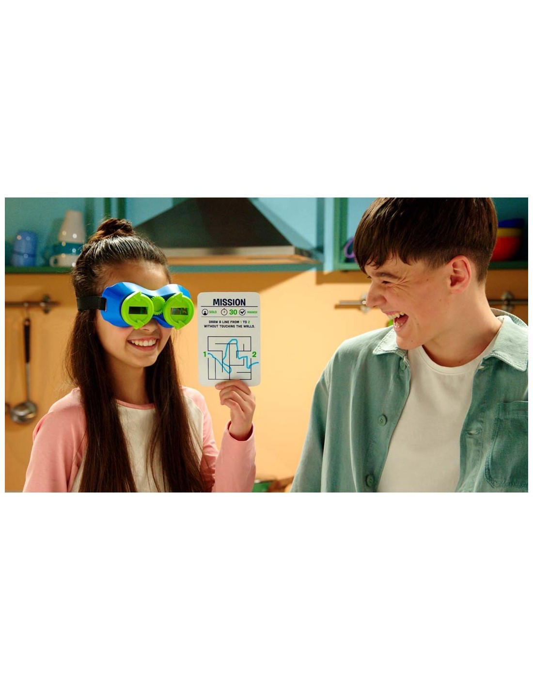 Inhoud: 1 x Vision Impossible bril (met verstelbare lenzen: boven-/onder- of zijzicht), 29 x missiekaarten, 1 x pen met uitwisbare inkt, 1 x handleiding