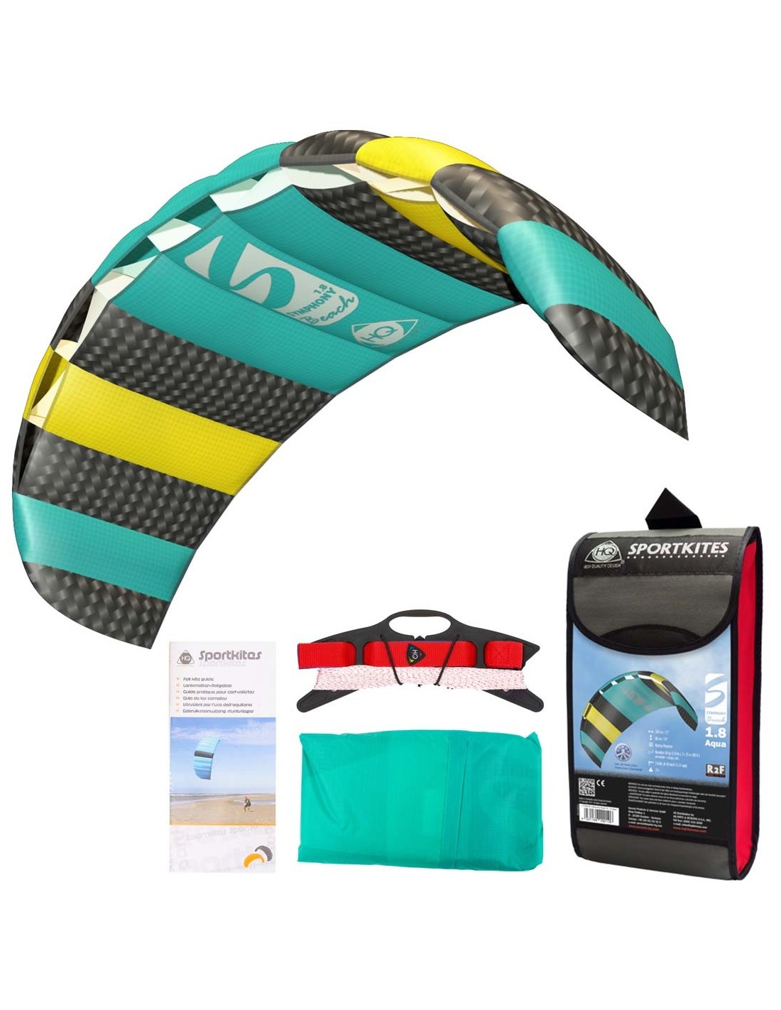 Ready to Fly-uitrusting: inclusief lijnen op de winder en comfortabele vliegriemen.