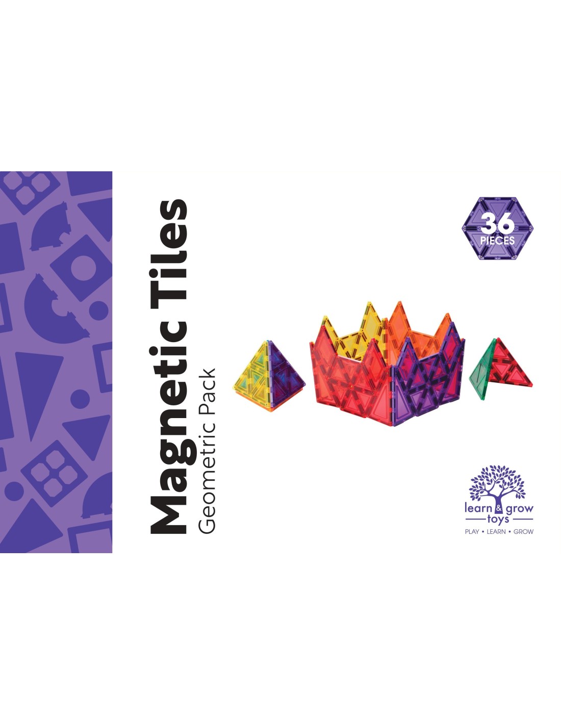 Learn & Grow Toys - Magnetic Tiles - Geometry Pack (36 Piece)