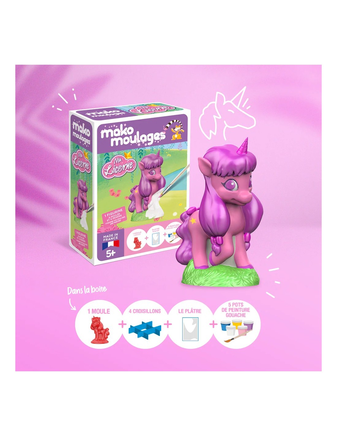 Mako Moulages - Eenhoorn lila 1 mal voor sneldrogend gips set - pakket S