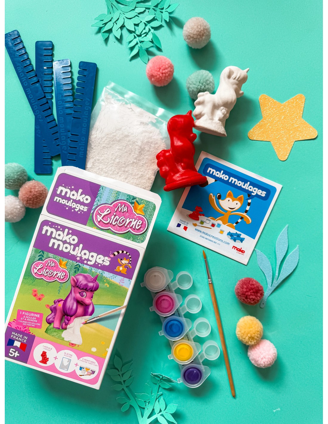 Alles is gemaakt in Frankrijk (mal, gips, verf, afstandshouders en zelfs de kwast, verfhouder en de verpakking!)
