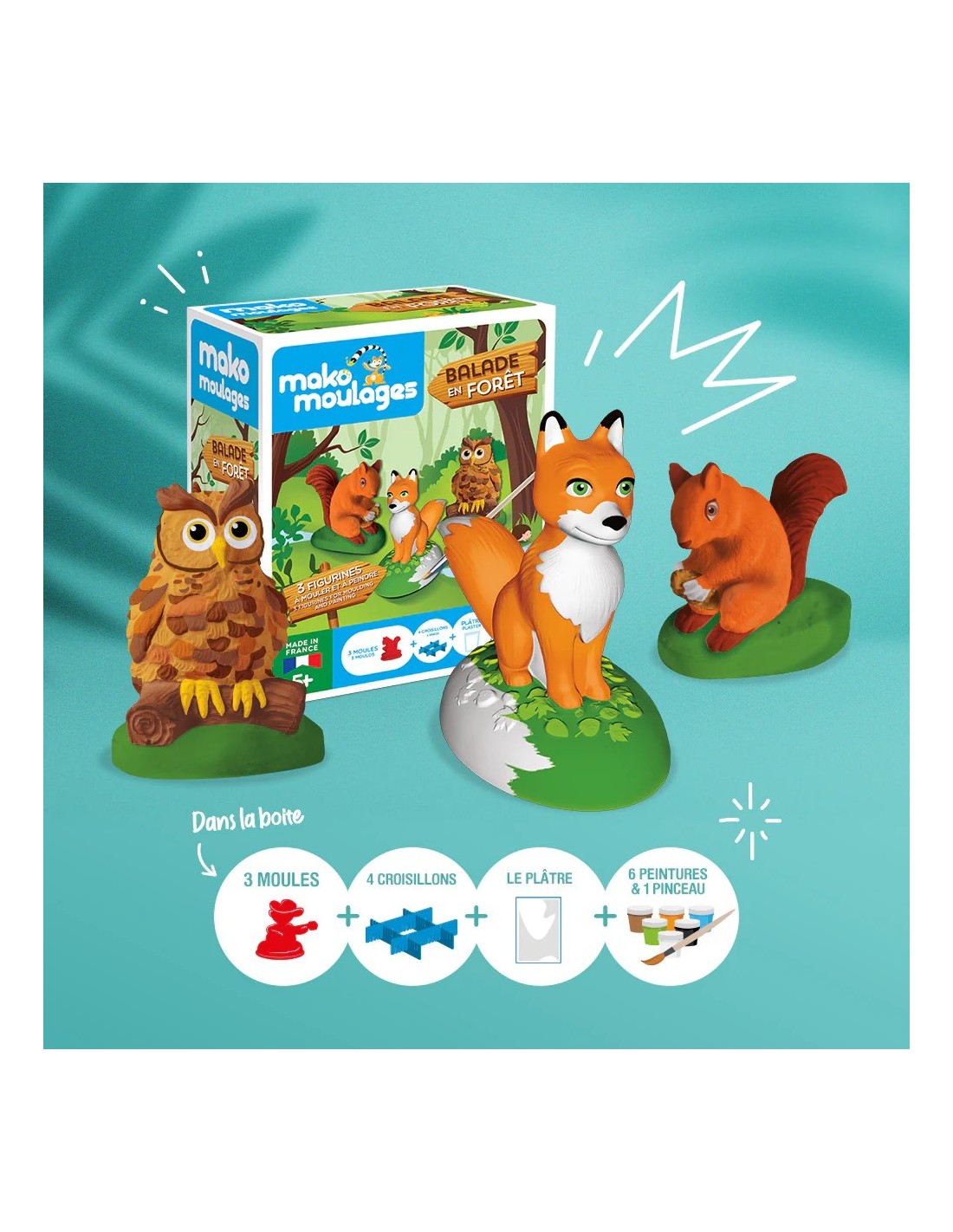 Mako Moulages - Bosdieren uil eekhoorn vos 3 mallen set voor sneldrogend gips - pakket M