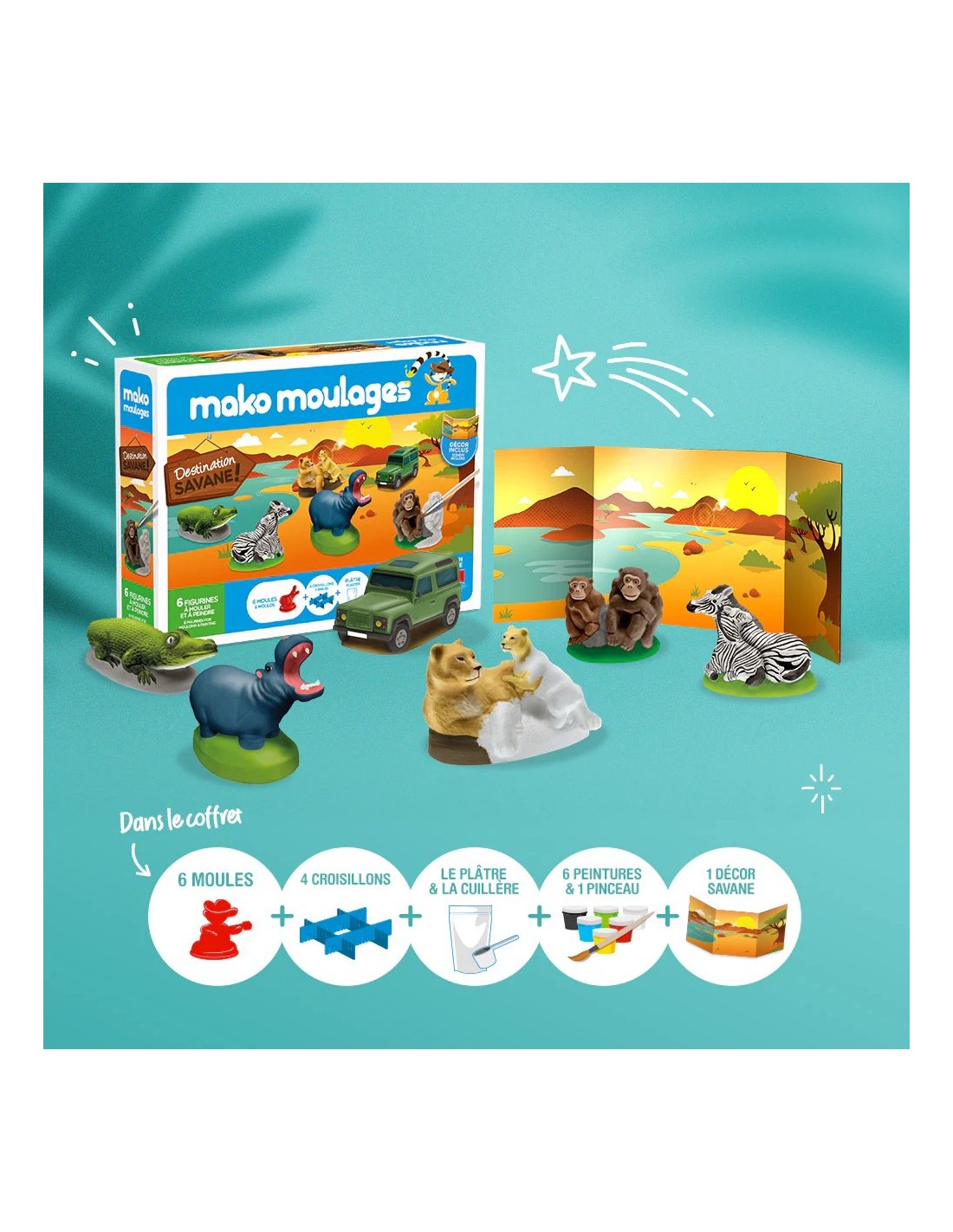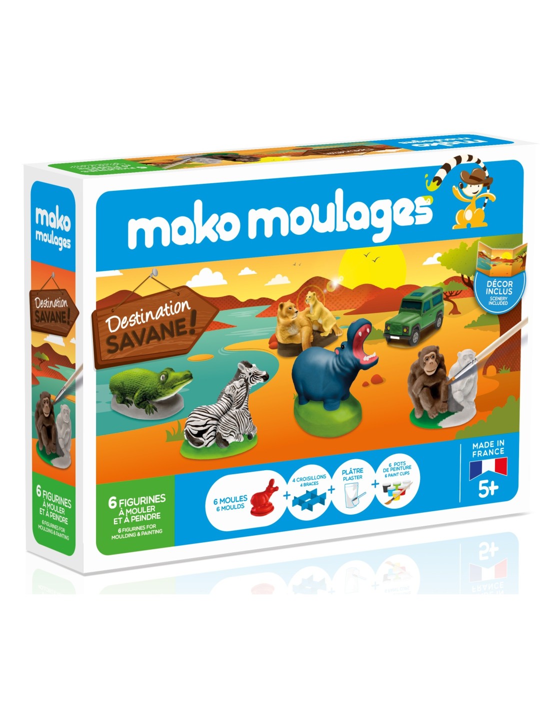 Mako Moulages - Wilde dieren en jeep 6 mallen voor sneldrogend gips set - pakket L
