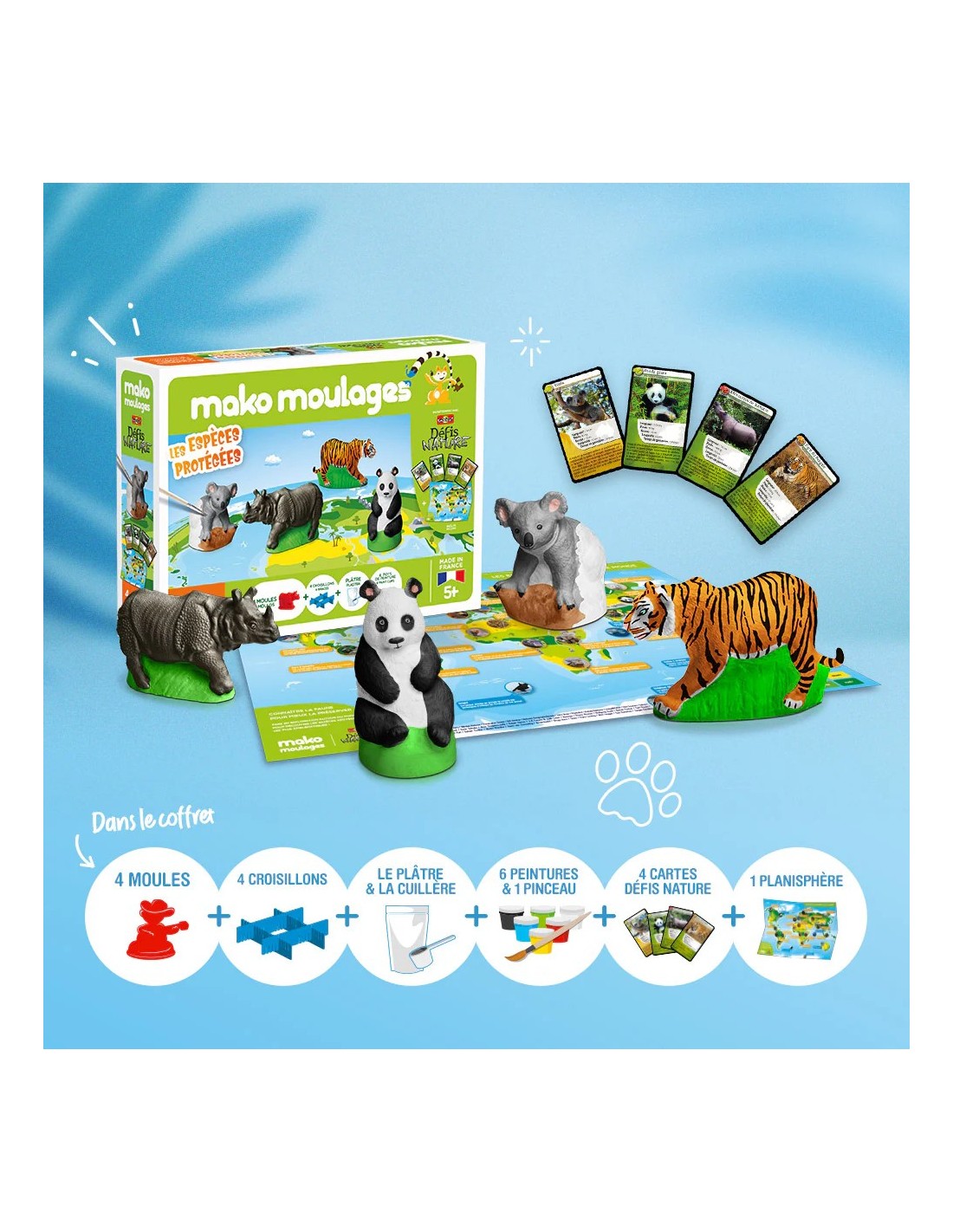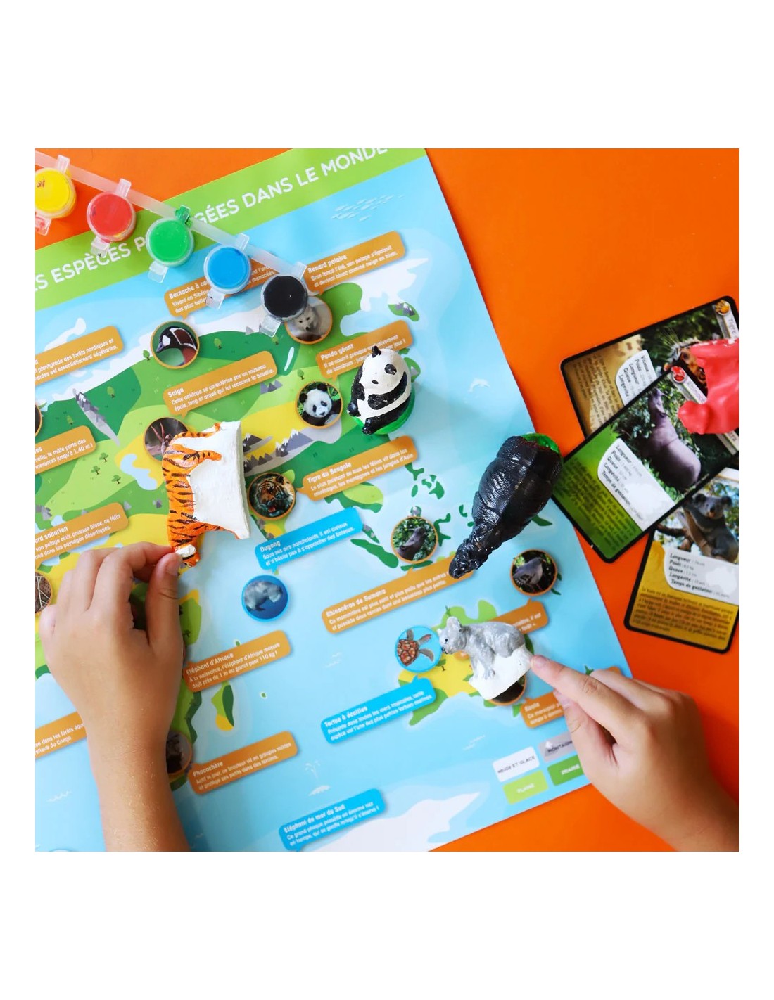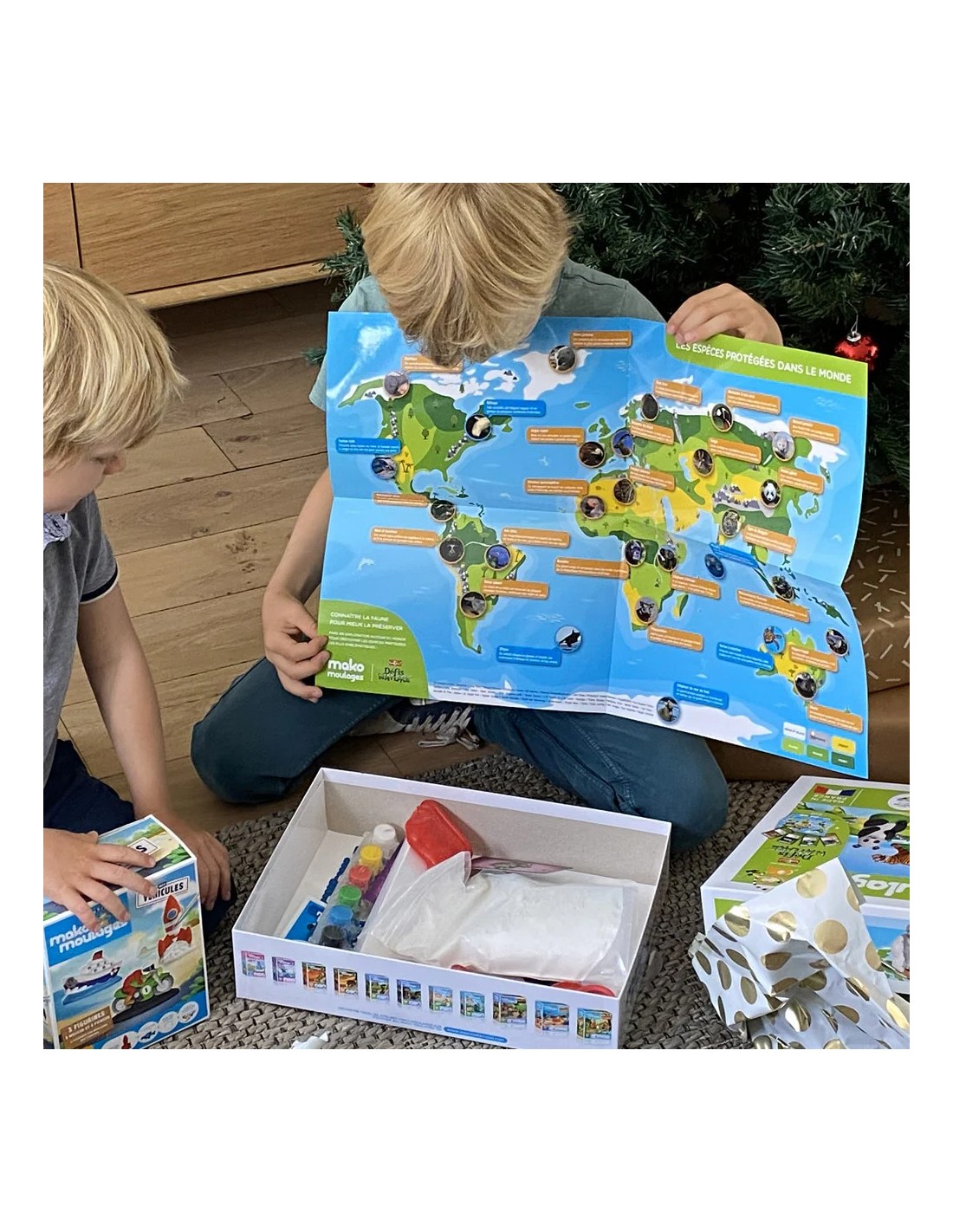 Zoek de leefomgeving op van 4 bedreigde diersoorten op de FRANSTALIGE wereldkaart met deze gietmallen set van 4