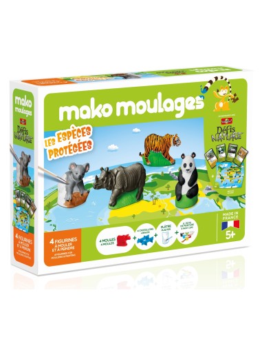 Mako Moulages - Bedreigde diersoorten panda koala tijger neushoorn 4 mallen voor sneldrogend gips set - pakket L