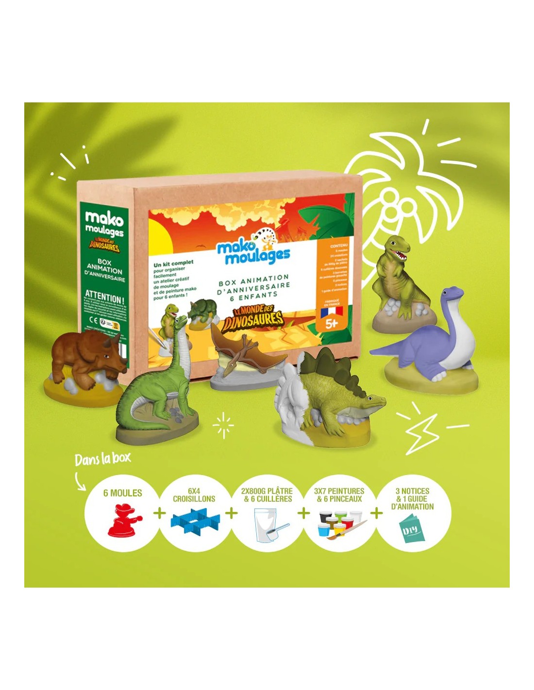 Mako Moulages - Verjaardagsbox voor 6 kinderen Dinosaurus