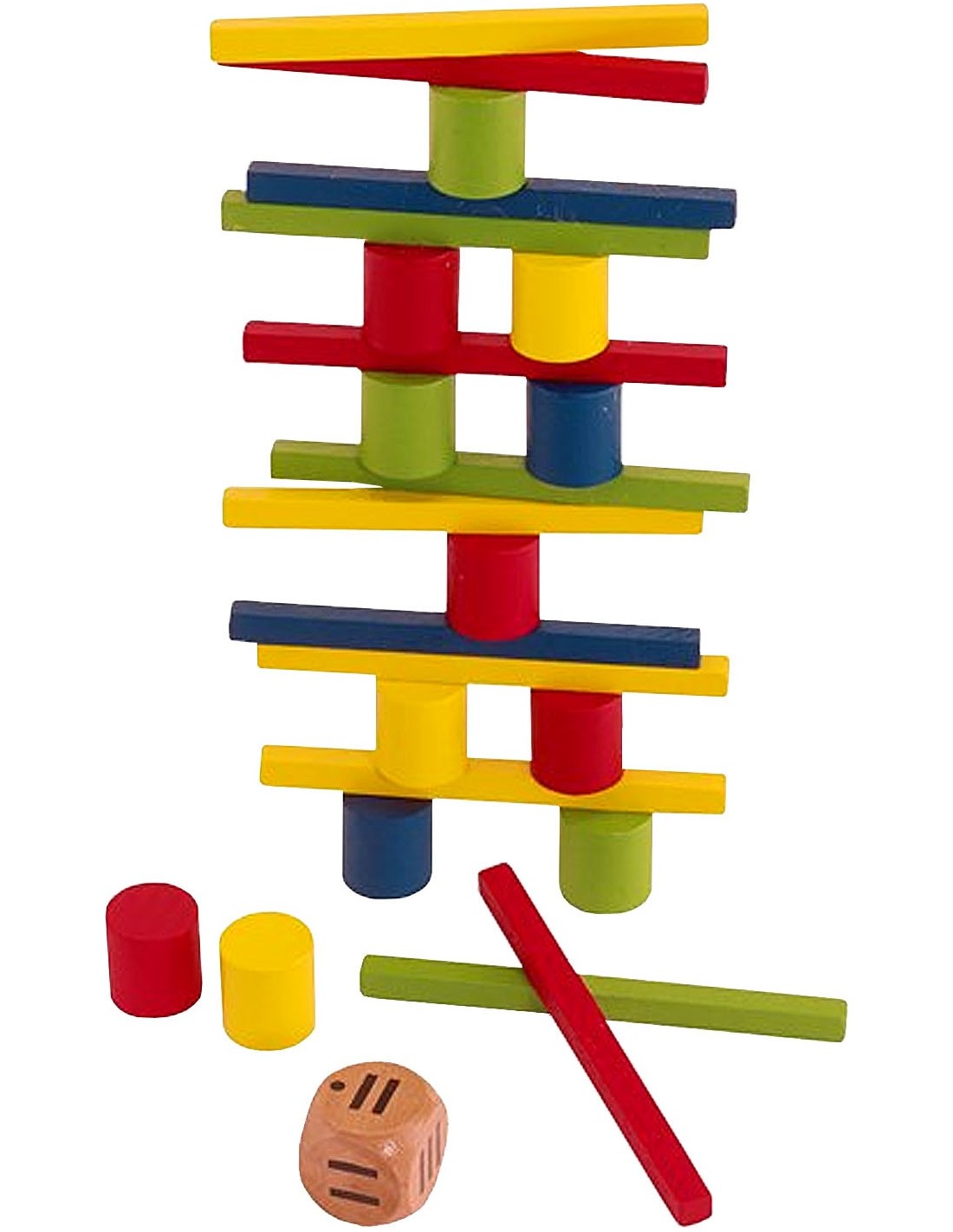 Houten stapelspel met dobbelsteen inclusief Nederlandse spelregels