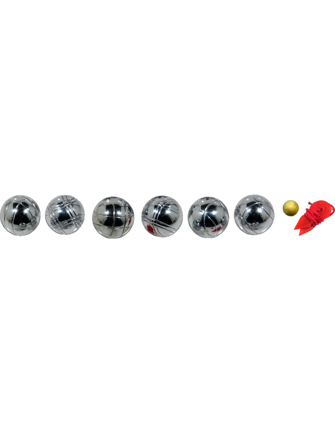 Met 6 echte zware ballen van 3 cm van zeer goede kwaliteit, en het onmisbare houten but en koord om de werpcirkel te tekenen.