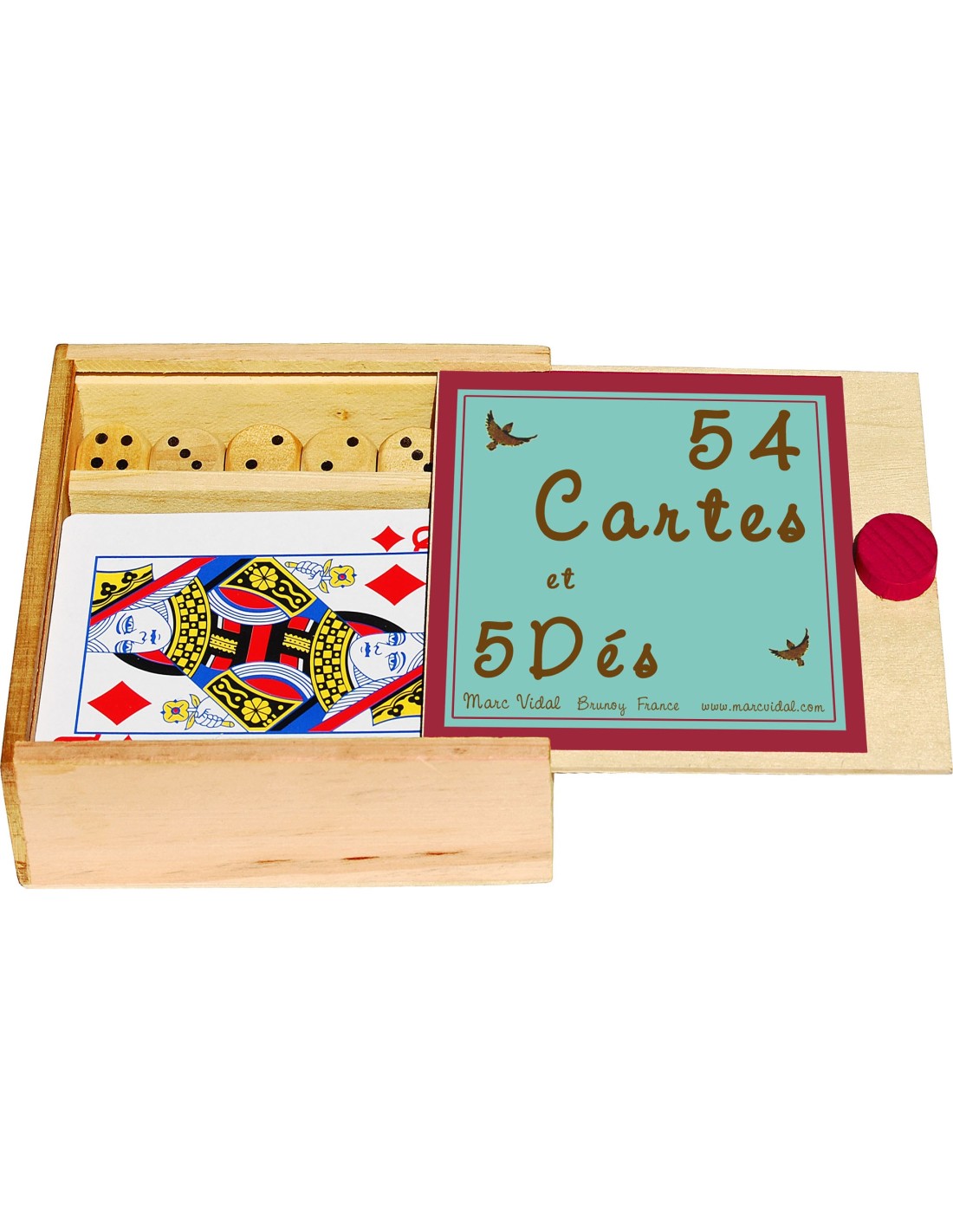 Marc Vidal - 674 - Kaartspel en dobbelstenen in houten doosje