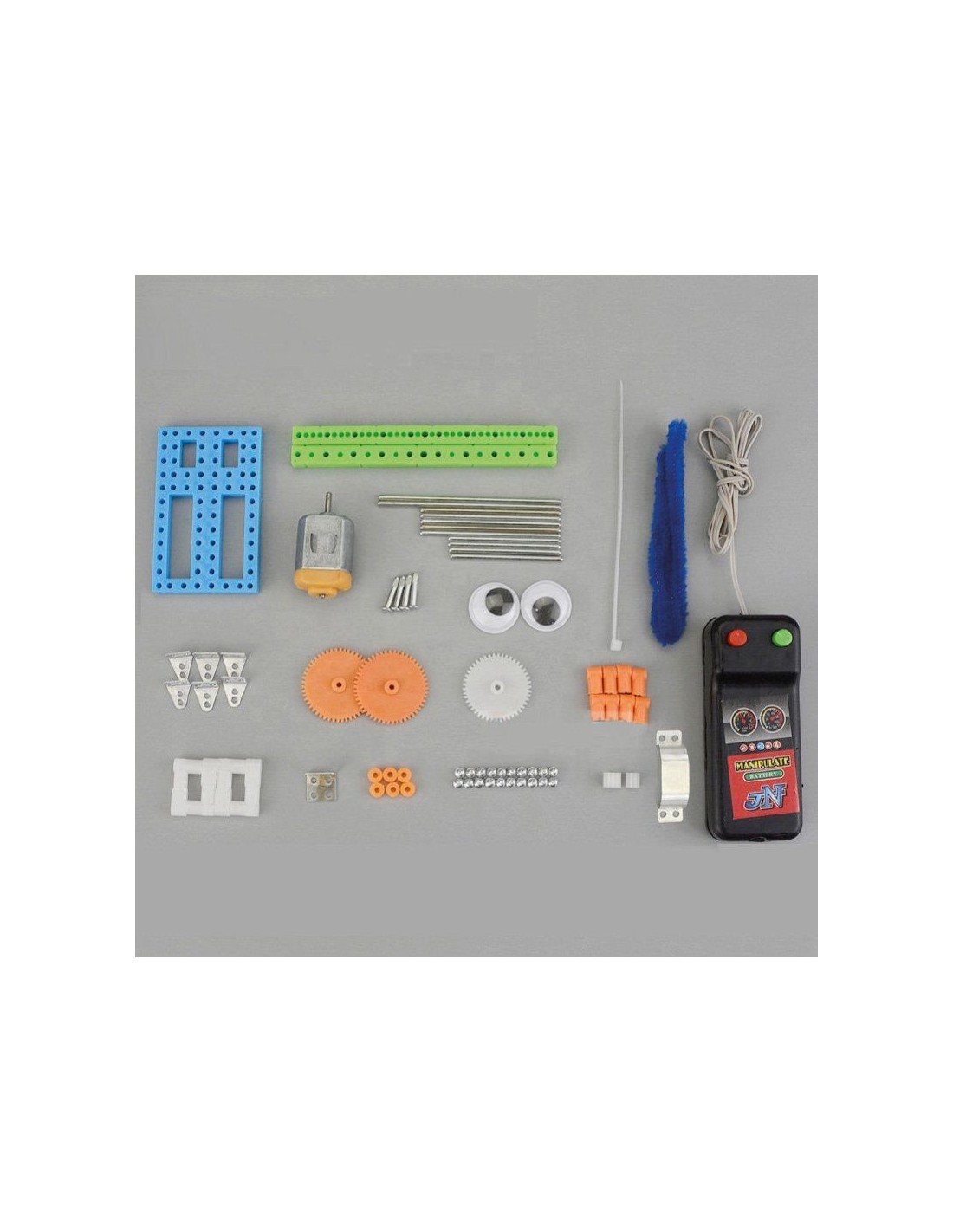 Maak je eigen wandelende robot hond! Voeg meer dan 20 componenten samen en neem de hond mee voor een wandeling, druk op de knoppen op de afstandsbediening en zie hoe de hond op commando vooruit en achteruit beweegt!