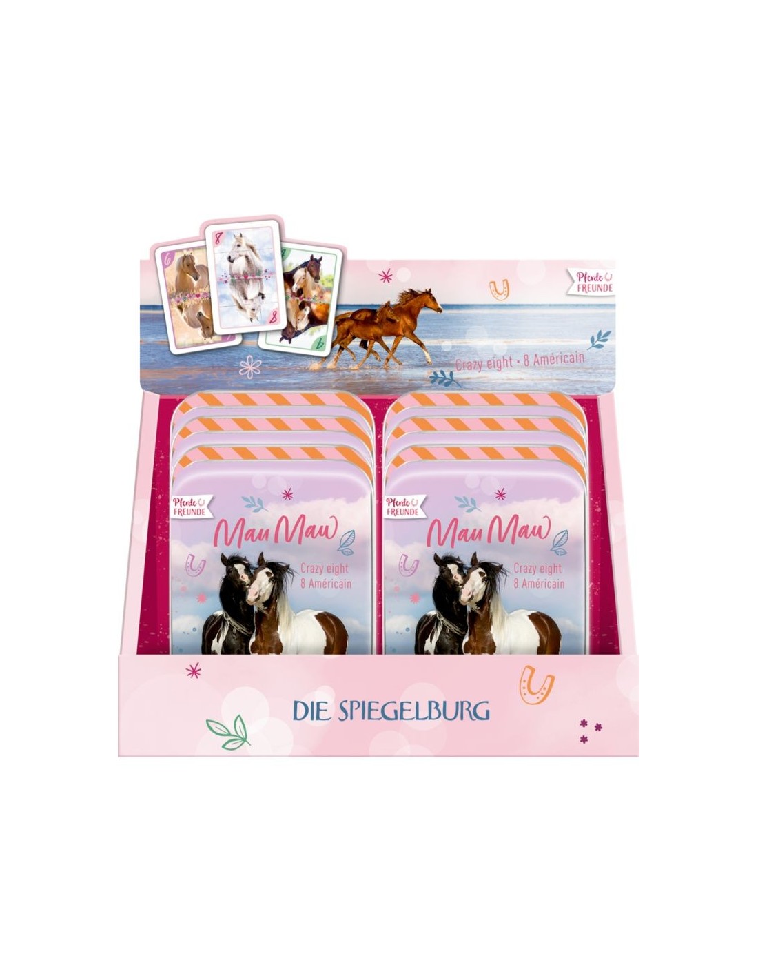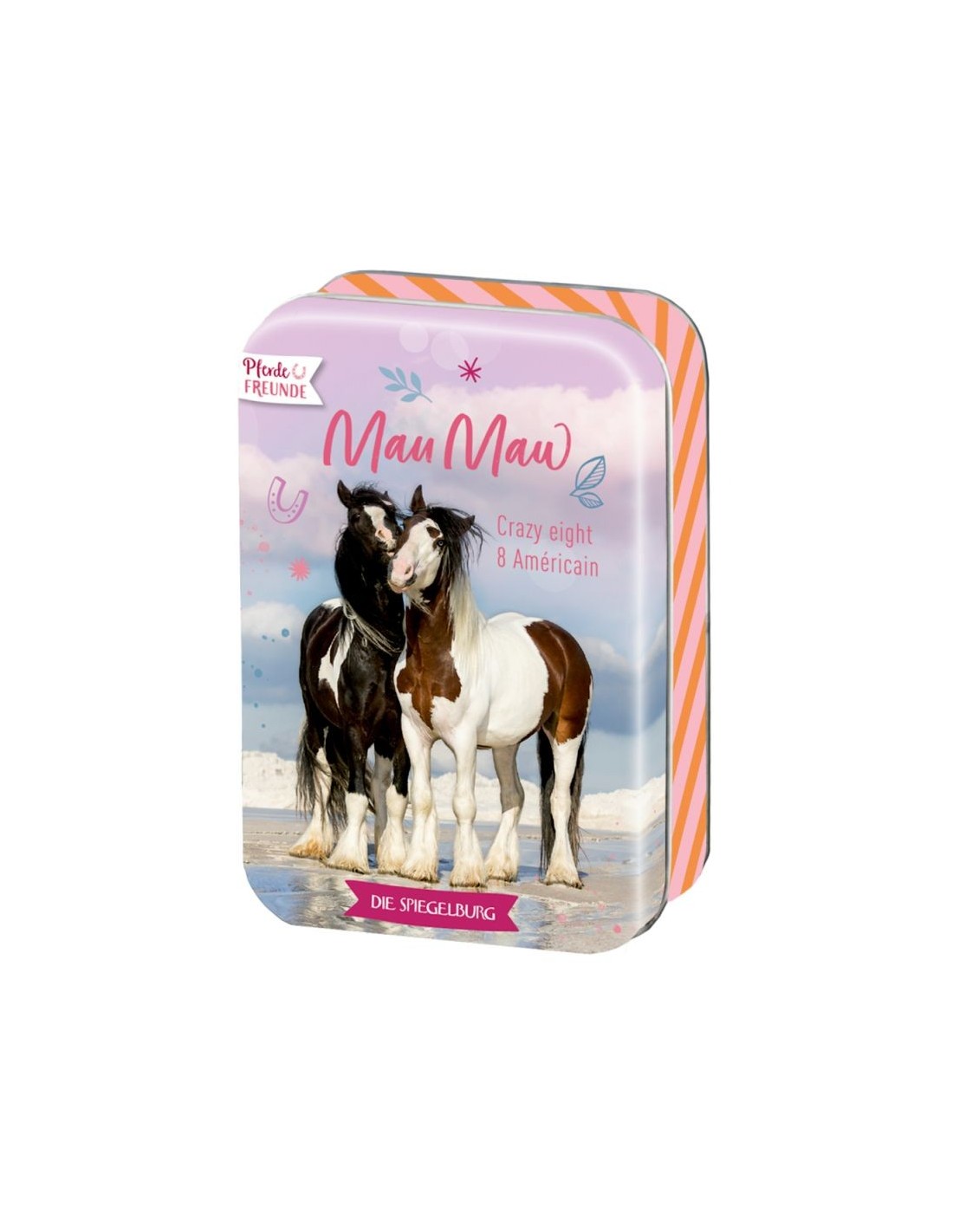 Plezier voor echte paardenliefhebbers! Het Mau-Mau kaartspel uit de "Paardenliefhebbers" collectie van Die Spiegelburg garandeert urenlang speelplezier met vrienden en familie. De 52 speelkaarten zorgen voor variatie en maken elke ronde spannend. De metalen doos, van circa 7,5 x 11 x 3 cm, houdt de kaarten veilig en beschermd – ideaal om mee te nemen!