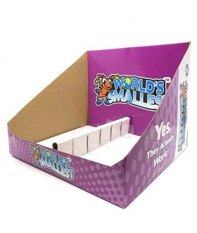 Toonbankdisplay voor het plaatsen van 12 's werelds kleinste of' s werelds coolste pakketten.