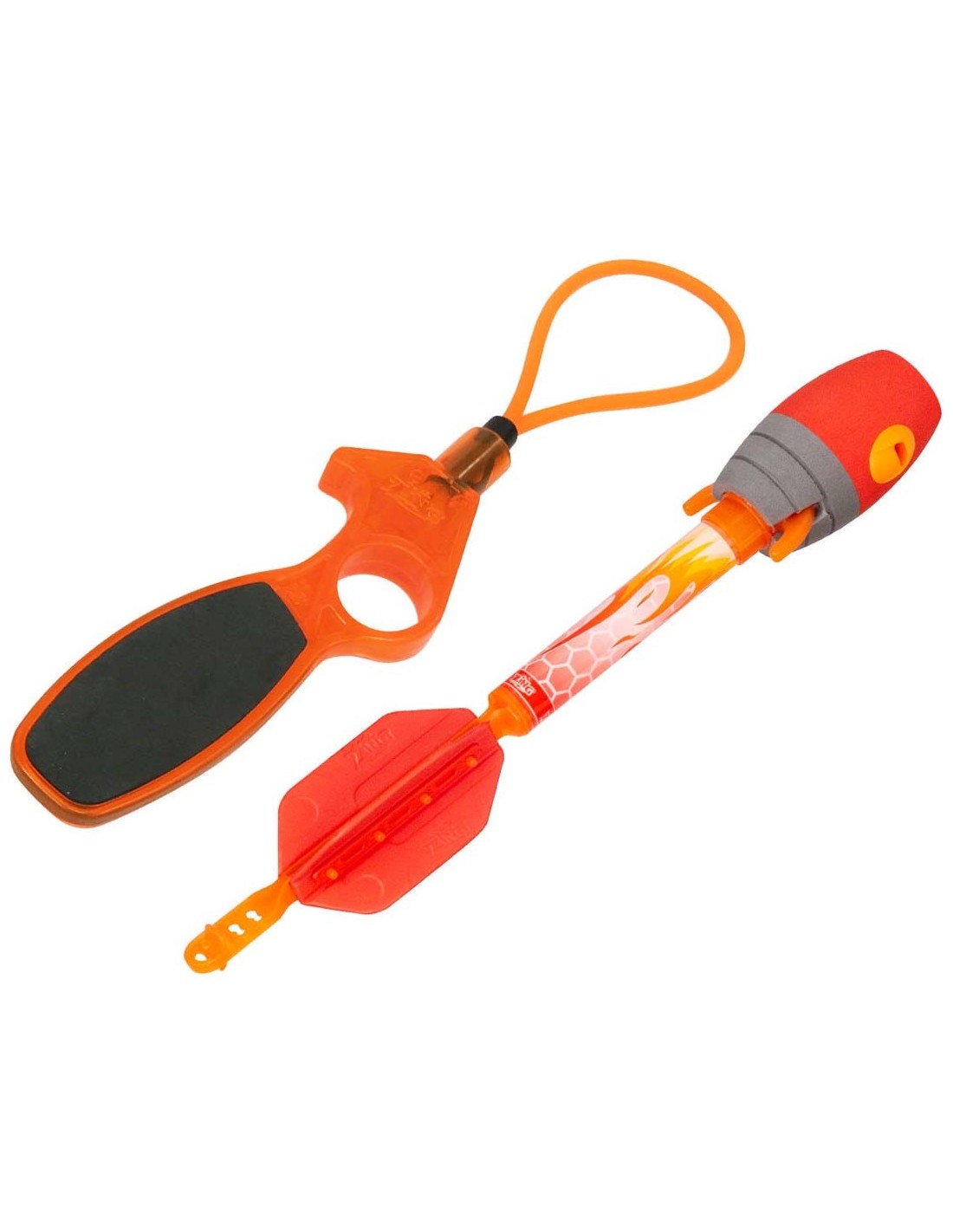 Sky Ripperz zijn de originele supersnelle raketten van Zing – met een elastisch lanceersysteem voor spectaculaire vluchten! Bevestig ze eenvoudig aan de Rip-Zip lanceerder, trek hem naar achteren en laat los – en de raket schiet met een fluitend geluid de lucht in! Hij vliegt meer dan 24 meter hoog – het speciale fluitje op de spits van de raket zorgt voor een opwindend vlieggeluid! Of het nu in de tuin, het park of op het strand is – de Sky Ripperz garandeert actie, spanning en verbaasde blikken!